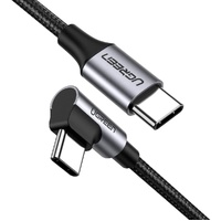 1 x UGREEN USB-C to Angled USB2.0-C Round Cable M/M Aluminum Shell Nickel Plating 1m (Gray Black) 50123