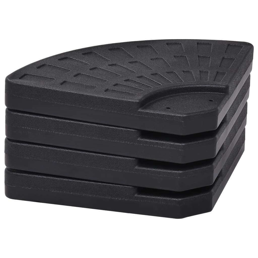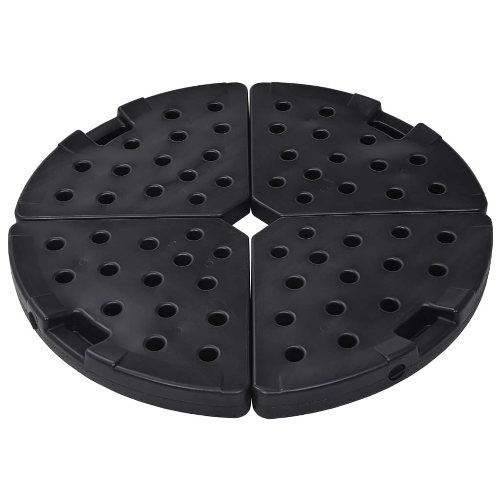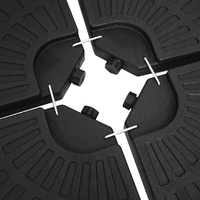 Keep your cantilever umbrella steady in harsh weather and high winds with our heavy duty water/sand filled umbrella base. This set of 4 umbrella base is designed for offset or market umbrella with cross base. Made from long lasting HDPE plastic, this base set is rust free and sure to provide service for many years to come. It comes in 4 separate pieces, which provides approximately 60 L of holding weight when filled with water or an awesome 72 kg when filled with sand. Without the filler, the umbrella base is light in weight, which makes it easy to carry and store thanks to the handle design. Delivery includes 4 fan-shaped umbrella bases.