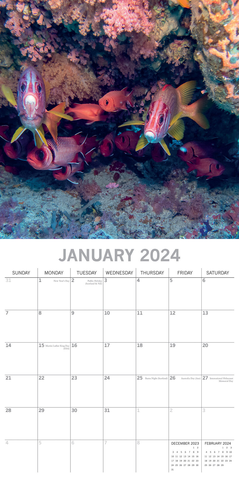 Under the Sea 2024 Square Wall Calendar 16 Month Planner Christmas New Year Gift