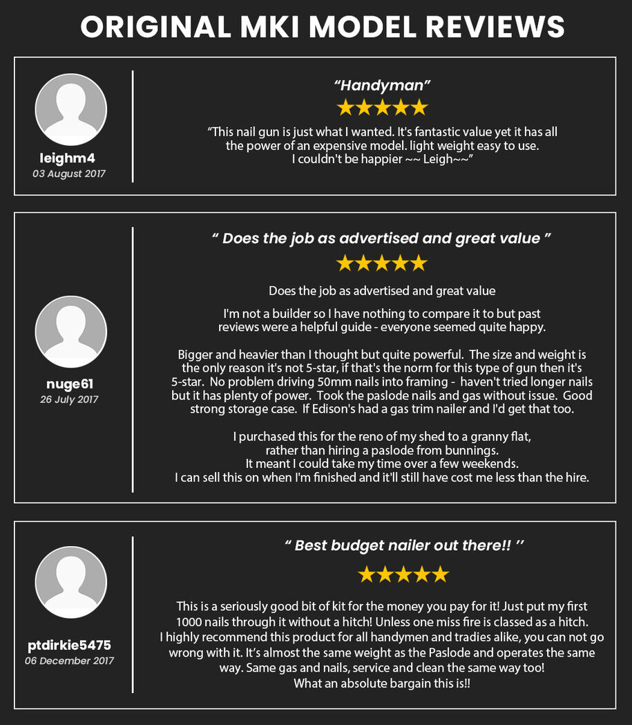 $476.57The NEW UNIMAC LXG3000 MkII Gas Framing Nailer has landed and has already asserted itself among the most highly acclaimed models on the market. A must have for any tradesmen, builder, handyman or serious DIYer, this class leading commercial grade nailer is designed and engineered to uncontested quality standards for greater reliability and improved durability.