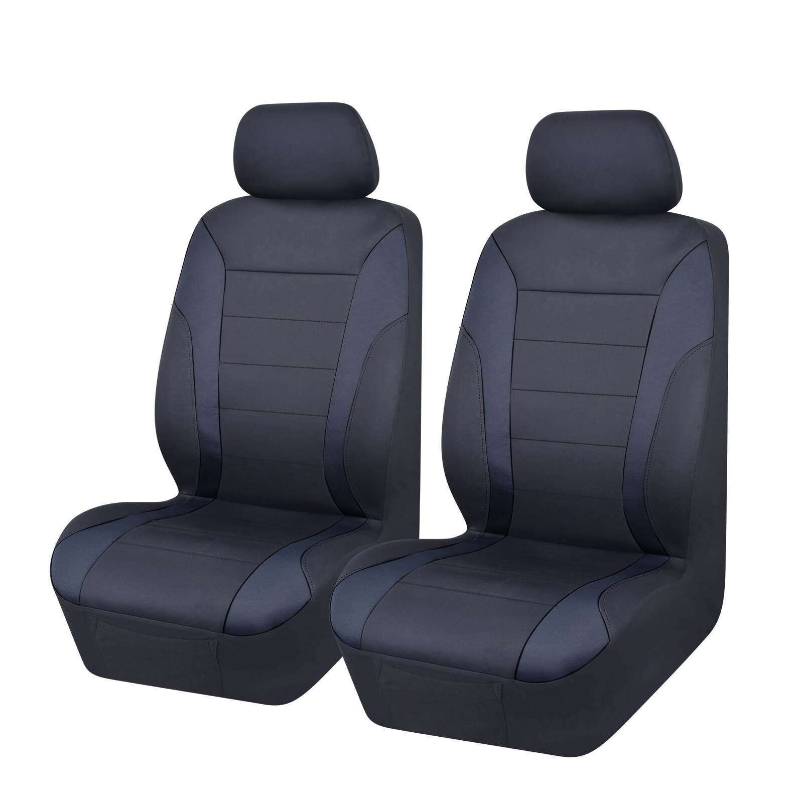 Universal Ultra Light Neoprene Front Seat Covers?Renowned For Its Ability To Be Soft And Flexible Yet Durable And Reliable.??Provides Good Thermal And Moisture Insulation. Highly Resistant To Many Hazards Including Ozone, Sunlight And Oxidation As Well As Many Chemicals And Water. Contemporary Design Colour Contrast Side Panels.