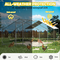 $454.95Still finding a large cage for your chickens? Our walk-in pen run is your perfect choice!This chicken coop is designed with lockable door and close hexagonal mesh, both of which prevent your pets from escaping and protect them from predators. Moreover, you dont really need to worry about what if bad weather comes because the sturdy galvanized metal frame with ground stakes ensure reliable stability to well withstand rigorous conditions. The waterproof and sun-protective oxford cover also helps create a cozy living environment for poultry. And water, snow and debris can run off the spire-shaped roof easily. All in all, our large poultry cage is a safe and comfortable shelter for chickens, ducks, rabbits, dogs and other animals.