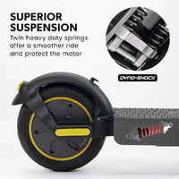 Twin heavy-duty springs soak up the bumps for a more comfortable ride with optimal handling across all urban terrain! The system also protects the motor from big impacts which means maximum longevity.