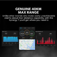 Despite a massive battery system and a heavy-duty motor, the Synergy 7 MKII weighs in at a reasonable 18kg, thanks to the premium aluminium frame. The frame boasts superior torsional strength for optimal handling, and to prevent breakages that other models experience.