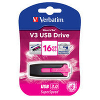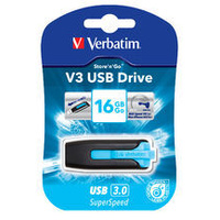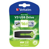 $27.25Featuring a USB 3.0 interface for SuperSpeed data transfer, the Store \'n\' Go V3 USB Drive is up to 10 times faster than USB 2.0* making it faster for transferring and saving larger file sizes of all types. The design of the V3 USB Drive also ensures that the USB connectors are protected featuring a \'slide and lock\' mechanism. This locks into position when using the drive and retracts back into a closed position to protect the connector when not in use. Simple and easy to use, just plug into any USB 3.0 port (also compatible with USB 2.0) and drag and drop your folders and files. Capacity: 16GB Read Speed: Up to 60MB/sec (USB 3.0 host system) Write Speed: Up to 12MB/Sec (USB 3.0 host system) Product Number: 49172 Features and Benefits USB 3.0 SuperSpeed Interface. Slide and Lock\' mechanism protects the USB connector when not in use. Compact, stylish design. Verbatim 2 Year Limited Warranty.