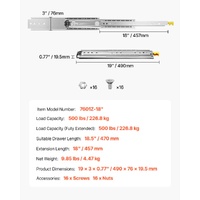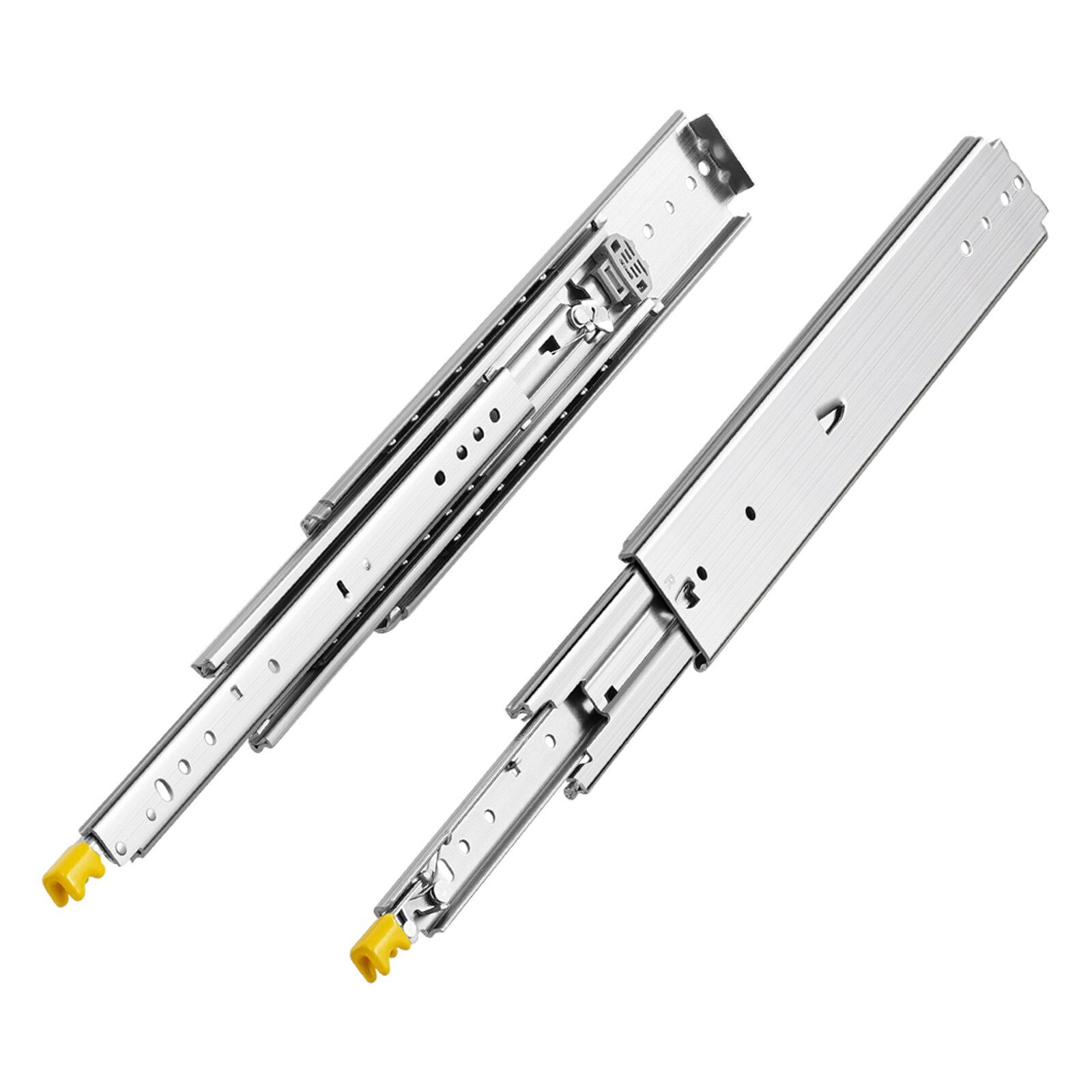 Made of 0.77 in/19.5 mm thick high hardness steel, the heavy duty drawer slides have a weight capacity of up to 500 lbs. The galvanized finish makes the telescoping drawer slides rust and wear-resistant for long-time use. It can be used in shelving, cabinets, industrial drawers, RVs, trucks, vending machines and more.