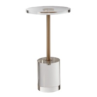 Combining luxurious metallic elements with transparent acrylic material, this clear acrylic end table expands the overall sense of space with the reflection of mirror-like metal and clear acrylic under natural light.