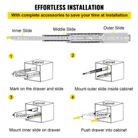 These slides feature a lock-in and lock-out design for easy control, secure fixation, and no chance of drawer separating from the cabinet. Different from those without locks or only one lock, our dual lock design provides more security and stability. A double row of ball-bearing action provides a smooth slide performance when closing and opening the drawer. The nylon buffer design on the middle-section slides produces less noise and no bounce back.