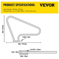 48"L x 36"H/ 121.9 x 91.5 cm pool handrail is designed specifically for providing your family with and secure way to enter and exit the pool. A 4ft comfortable nylon covers the ergonomic curve grip and features excellent performance at preventing your hands from being hurt by cold or hot weather, reducing the risk of slipping even when hands are wet. The grip cover is also detachable for temporary installation.