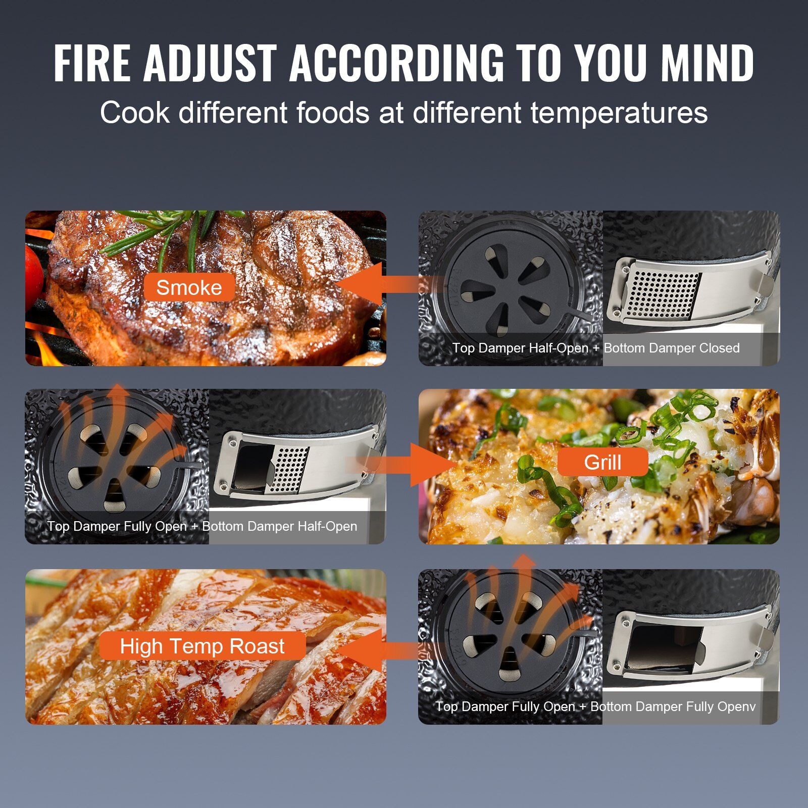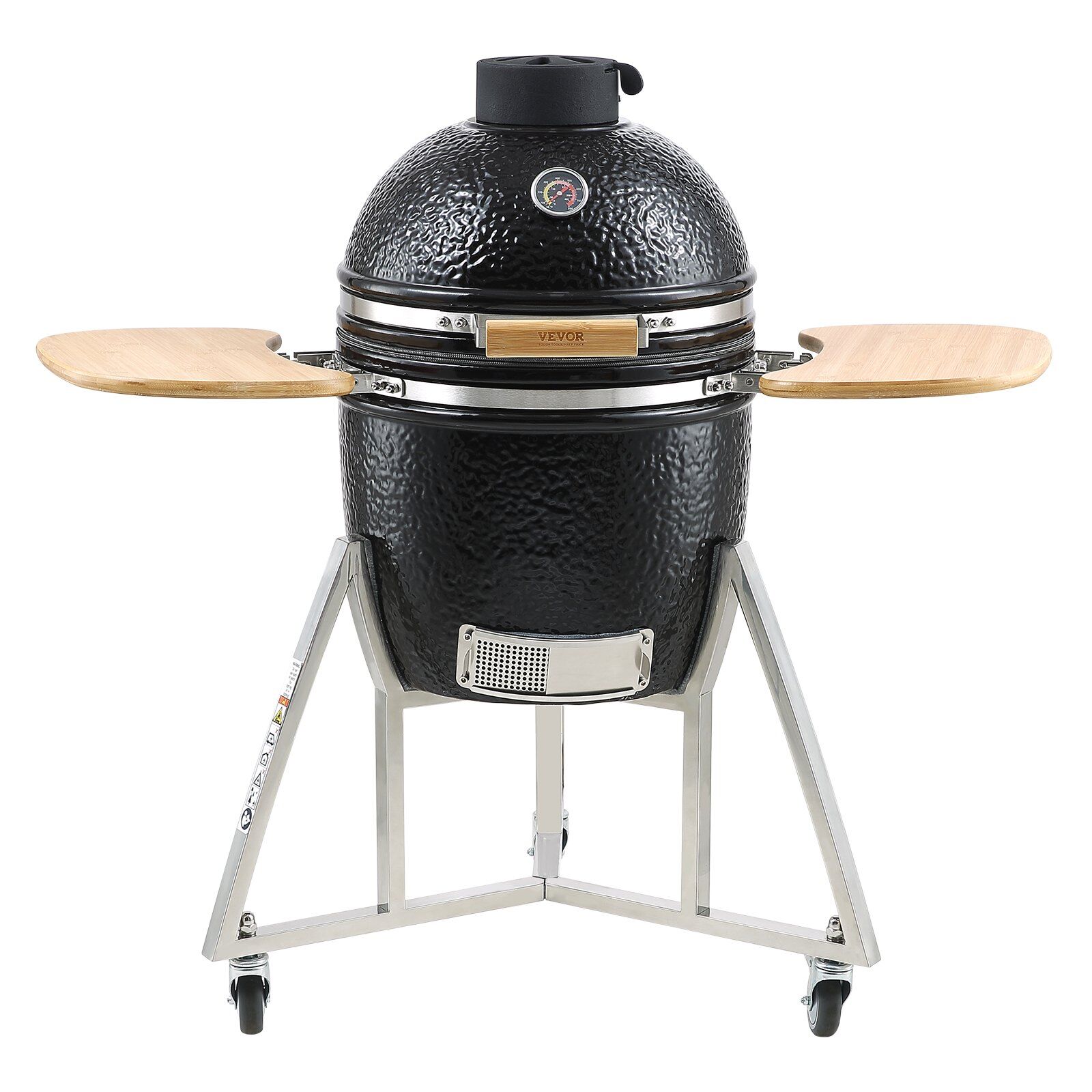 This 18-inch ceramic BBQ grill has a large cooking space of about 450in_. Equipped with 3 Layers Grills, our smoker can quickly grill your meat and vegetables simultaneously, catering for a party of four or more.