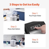 The countertop ice machine operates at a noise level lower than 42 dB, similar to the sound of a working refrigerator. The compact design includes a handle and measures 8.7 x 11.6 x 11.4 inches / 222 x 294 x 290 mm, making it suitable for use in rooms, offices, restaurants, and more.