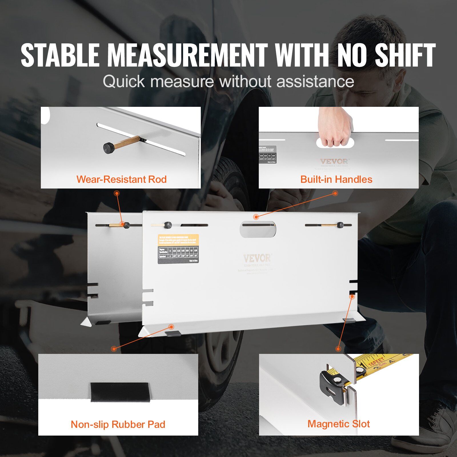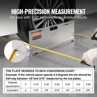 No tire removal is required. Measure the toe angle on the hub directly with our adjustable alignment rods (10.5"-21.2"). This measurement method minimizes inaccuracies caused by tire bumps or sidewall inscriptions. Included two 5m tape measures with precise 1/32" increments and professional guidance for effortless operation.