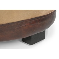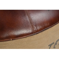 NOW $313.91The rich, distressed leather and old Indian army tents used to create our Vintage Round Ottoman create a unique, classic and eye-catching decor piece. A wonderful addition to studies, living and entertaining areas.