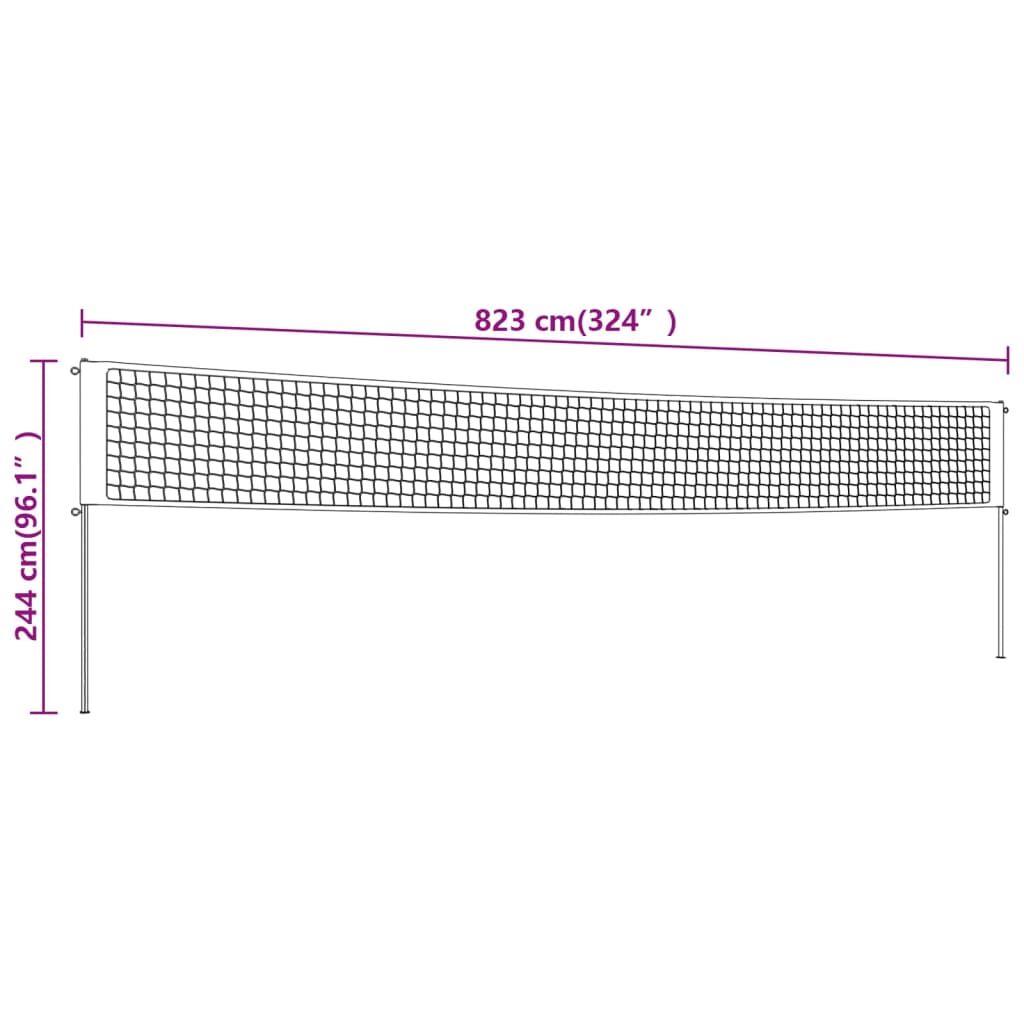 This volleyball net, quick to install and easy to carry, is a perfect entertainment choice for your backyard family fun time! Durable material: The sports net is made of PE fabric. Polyethylene fabric is UV-resistant and has tensile strength. It also has excellent resiliency and recovery from bending deformation.Sturdy structure: The training equipment features a steel frame. Steel is an exceptionally hard and strong material. It offers sturdiness and stability.Wide application: This volleyball equipment is suitable for playing badminton, volleyball, tennis, soccer tennis and pickleball on the beach, backyard, park, garage and any flat place!Easy transportation: The pickleball net can be packed in a carrying bag for easy transportation and storage, meeting your training needs anytime. Good to know:To make assembly as easy as possible, each product is delivered with a manual.