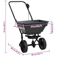 This walk-behind salt spreader will not only help you to salt your driveways and walkways in winter, but can also be used when sowing and applying fertilizer in spring and fall. The robust spreader has a tubular steel frame, which is corrosion resistant and durable. It also has a large PVC hopper to carry the salt, seeds, or fertilizer. This garden spreader is designed to strike a balance between dispersing too much or too little grass seed, neither too densely nor too sparsely, to make the grass grow healthily. It also helps to spread lawn fertilizer evenly to lower the risk of scorching. The lawn spreader is delivered with a cable-operated controller alongside the handle, with which you can easily adjust the spreading speed for higher efficiency. The design with two wheels and a long handle also help you to manoeuvre this tool in your garden easily. This item is easy to assemble.