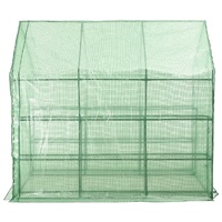Let your garden grown year round with this compact, lightweight walk-in greenhouse. This walk-in tunnel greenhouse can accommodate a high number of plants and flowers. It is ideal for both new and experience gardeners! This quality greenhouse is crafted with a powder coated steel frame for great stability and durability. The one-piece rip-stop cover is UV protected and features zippered front door for enhanced ventilation and easy in and out. The transparent green cover allows sunlight to reach your plants and flowers, which allows maximum solar performance for plant and keeps a warmer temperature. Additionally, it includes 12 sturdy shelves, providing plenty of room for trays, pots or planters of anything you want to grow. The planthouse is easy to assemble. No special tool is required.