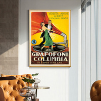 Wall Art 90cmx135cm Grafofoni Columbia Gold Frame Canvas