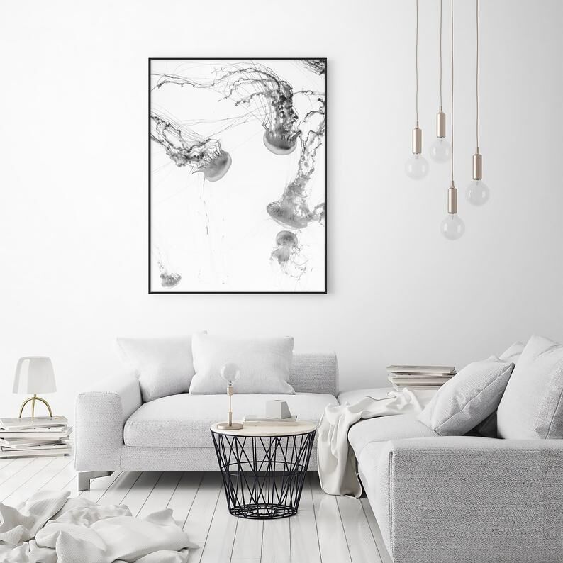 Wall Art 90cmx135cm Jellyfish Black Frame Canvas