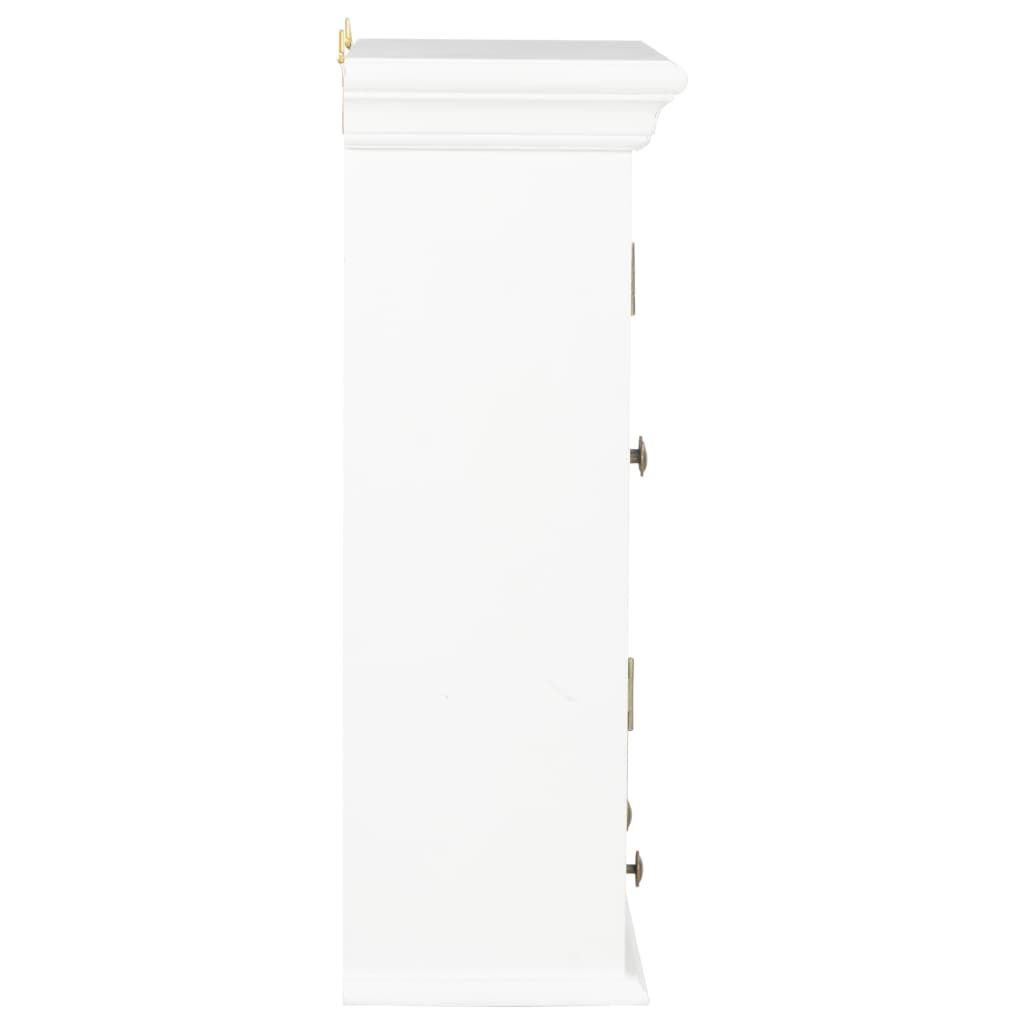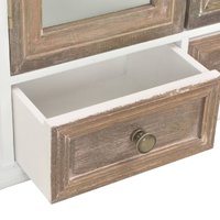 This multipurpose French style wall cabinet can be used in the kitchen for storing spices, canned goods and much more, in the bathroom for keeping bath towels neatly organised, or in the living room for displaying your books, collectables, ornaments, etc. The landhouse style hanging cabinet is made of engineered wood that has been applied to a painting finish, giving the cabinet a refined look, and making it easy to clean with a damp cloth. The wall cabinet features two drawers for extra storage space, as well as two acrylic doors that can be opened easily. These classic knobs add to the storage cabinet's vintage style. Thanks to the mounting system, the handing cabinet can be easily attached to the wall. The product is easy to assemble.