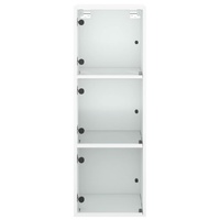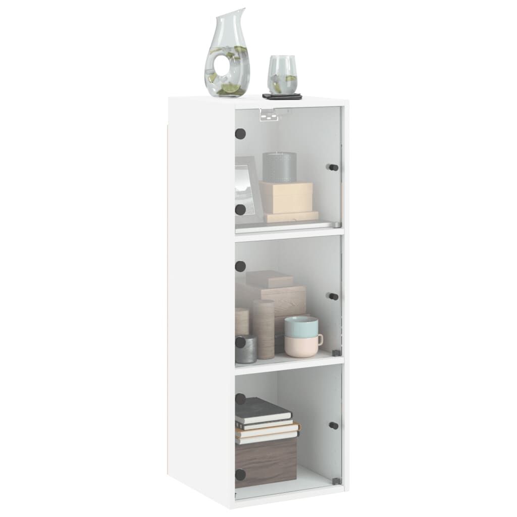 This wall cabinet is stunning and elegant. Not only is it an excellent solution for your chores and decorations, but it is also the perfect decoration for your empty walls and turns them into designer walls. Durable material: The engineered wood is of exceptional quality with smooth surface and also features strength, stability and resistance to moisture.Ample storage space: The hanging cabinet boasts compartments, enabling you to place items such as books, and keep them neatly organised and within reach.Versatile design: You can mount the storage cabinet on the workplace wall for convenient storage of tools or other miscellaneous items. Also, it transforms an empty wall into a design feature.Wall-mounted function: The storage cabinet can be wall-mounted to add extra storage space. That way, you can maximise your floor space and keep the area clean.Practical glass doors: Keep your space clutter-free by hiding small essentials behind the doors of the wall unit. In addition, the glass doors allow you to see inside the floating cabinet to display items beautifully. Good to know:Screws and plugs for inside the wall are not included. We advise to find and use screws and plugs suitable specifically for your walls. If you're not sure, you can consult with a professional. Please read and follow each step of the instructions.