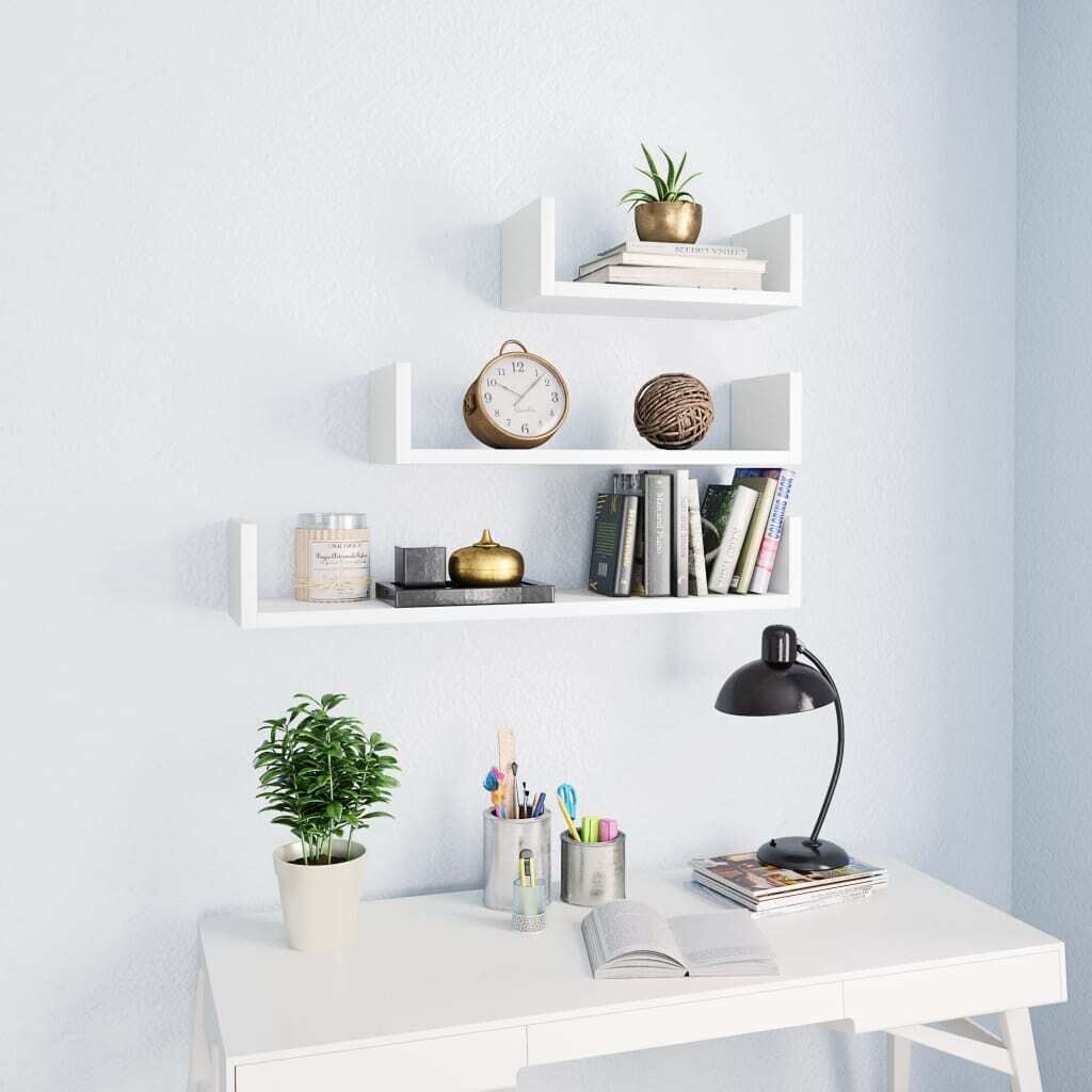 $27.25This set of 3 wooded shelves perfectly combines style and functionality. Simply yet elegant, this set is a great option to enlighten any wall in the room. Contemporarily-designed, this set of quality shelves is an ideal choice for your kitchen, living room, kitchen or bedroom wherever you need to place daily items. The shelves are made of board, which ensures it sturdiness, durability and long service life. The U shaped design offers perfect display or storage area for your books, CDs, flowers and other essentials. The shelves are easy to assemble. Delivery includes 3 shelves.