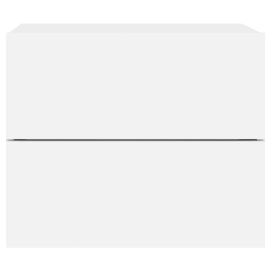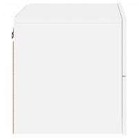 This wall-mounted bedside cabinet with LED lights is the perfect solution for your living space to maximise space and keep the floor areas clean. Durable material: The engineered wood is of exceptional quality with smooth surface and also features strength, stability and resistance to moisture. Made of engineered wood, the wall hung bedside cabinet is easy-to-clean.RGB LED lights: The floating bedside cabinet is equipped with vibrant RGB LED lights. With various customisable menus, you can effortlessly change the colour of the lights and even set them to adjust automatically. These LED lights not only enhance the contemporary look of the cabinet but also add to its trendy appeal.Wall-mounted design: This floating bedside unit can be wall-mounted to add extra storage space. That way, you can maximise your floor space and keep the area clean.Multifunctional cabinet: The bedside wall cabinet serves as the ideal place to put items such as books, collectables, ornaments, and more. It transforms an empty wall into a design feature. Good to know:Screws and plugs for inside the wall are not included. We advise to find and use screws and plugs suitable specifically for your walls. If you're not sure, you can consult with a professional. Please read and follow each step of the instructions.The product has a USB connector that requires a certified 5V USB power source (not included).