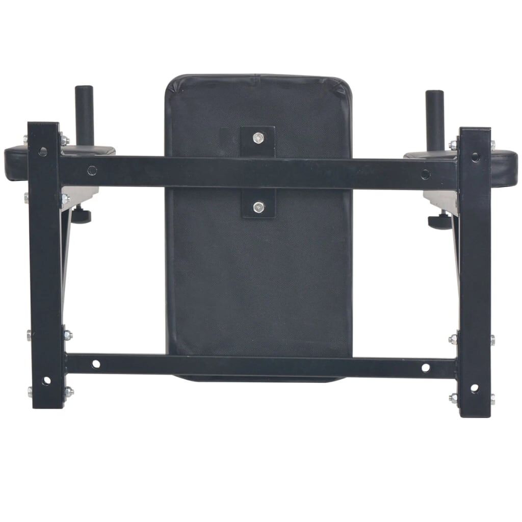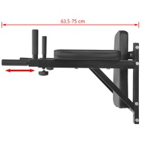 This wall-mounted dip station is a professional piece of fitness equipment used for exercising the triceps when doing dips, and abdominal muscles when doing leg raises. The dip station has 4 handles that are made of soft material for an improved grip and thickly-padded elbow and back cushions for maximum comfort. The handles are adjustable to suit your frame. This dip station can be easily mounted to a wall with the included mounting accessories. The parallel bars are supported by crossbars to further reinforce the frame. Assembly is easy.