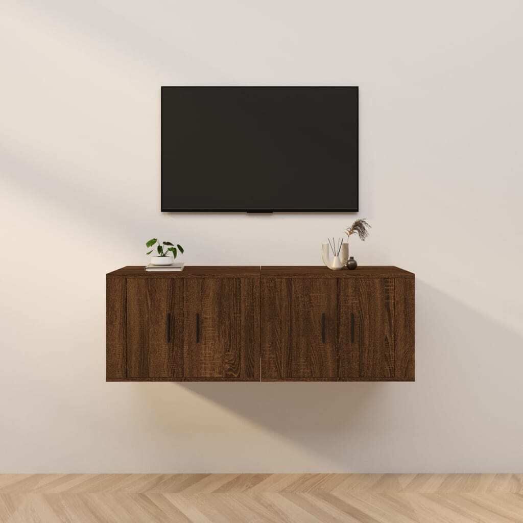 $92.07These wall-mounted TV cabinets feature a sleek and classic design, making them a decorative and practical extension to your decor. Durable material: The engineered wood is of exceptional quality with smooth surface and also features strength, stability and resistance to moisture.Ample storage space: The TV stand has a compartment, providing ample storage space for you to organise items like a media player, magazines, and others.Wall-mounted function: The TV unit doesn't take up any floor space. You can hang it on the wall easily.Sturdy top: The top of the media cabinet serves as an ideal place to put items such as books and ornaments.Practical doors: Keep your essentials free from dust by hiding them behind the door of the media unit. Good to know:To make assembly as easy as possible, each product is delivered with a manual.Screws and plugs for inside the wall are not included. We advise to find and use screws and plugs suitable specifically for your walls. If you're not sure, you can consult with a professional. Please read and follow each step of the instructions.