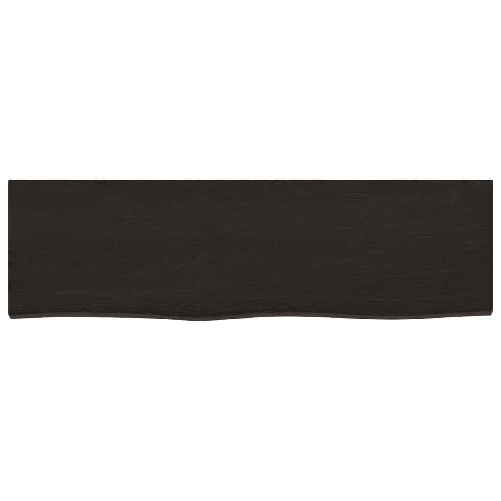 Do you need more storage options but don't have any spare space? This wall shelf in rustic style is the perfect solution. Durable construction: The wall shelf is made of solid oak wood, which is a beautiful natural material. Oak wood has a medium brown colour and a dense grain, contributing to its unique look.Versatile applications: Besides a shelf, this storage shelf can be combined with different bases according to your needs. It can be used as a bathroom top, cabinet top, desk top, table top etc.Treated surface: The wooden shelf has been treated with dark paint so it is ready for use as an additional finish is not required.Handmade with live edge: This shelf board is handmade with a live edge. Due to that the knots, cracks, slightly curved shapes, and colour tones are part of the oak wood, every piece of shelf has its own unique character to display. The delivery is random, ensuring the exclusivity and individuality of your product. Good to know:As a natural product, wood may show knots and imperfections that we fill with black fillings to ensure a smooth appearance.