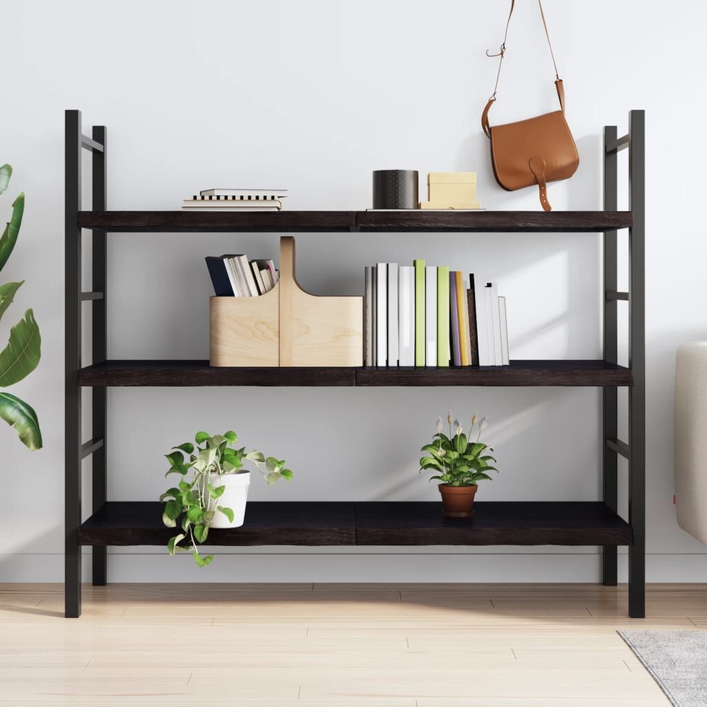 Do you need more storage options but don't have any spare space? This wall shelf in rustic style is the perfect solution. Durable construction: The wall shelf is made of solid oak wood, which is a beautiful natural material. Oak wood has a medium brown colour and a dense grain, contributing to its unique look. Due to the hinge design, it can be folded and stored in narrow spaces.Versatile applications: Besides a shelf, this storage shelf can be combined with different bases according to your needs. It can be used as a bathroom top, cabinet top, desk top, table top etc.Treated surface: The wooden shelf has been treated with dark paint so it is ready for use as an additional finish is not required.Handmade with live edge: This shelf board is handmade with a live edge. Due to that the knots, cracks, slightly curved shapes, and colour tones are part of the oak wood, every piece of shelf has its own unique character to display. The delivery is random. Good to know:As a natural product, wood may show knots and imperfections that we fill with black fillings to ensure a smooth appearance.
