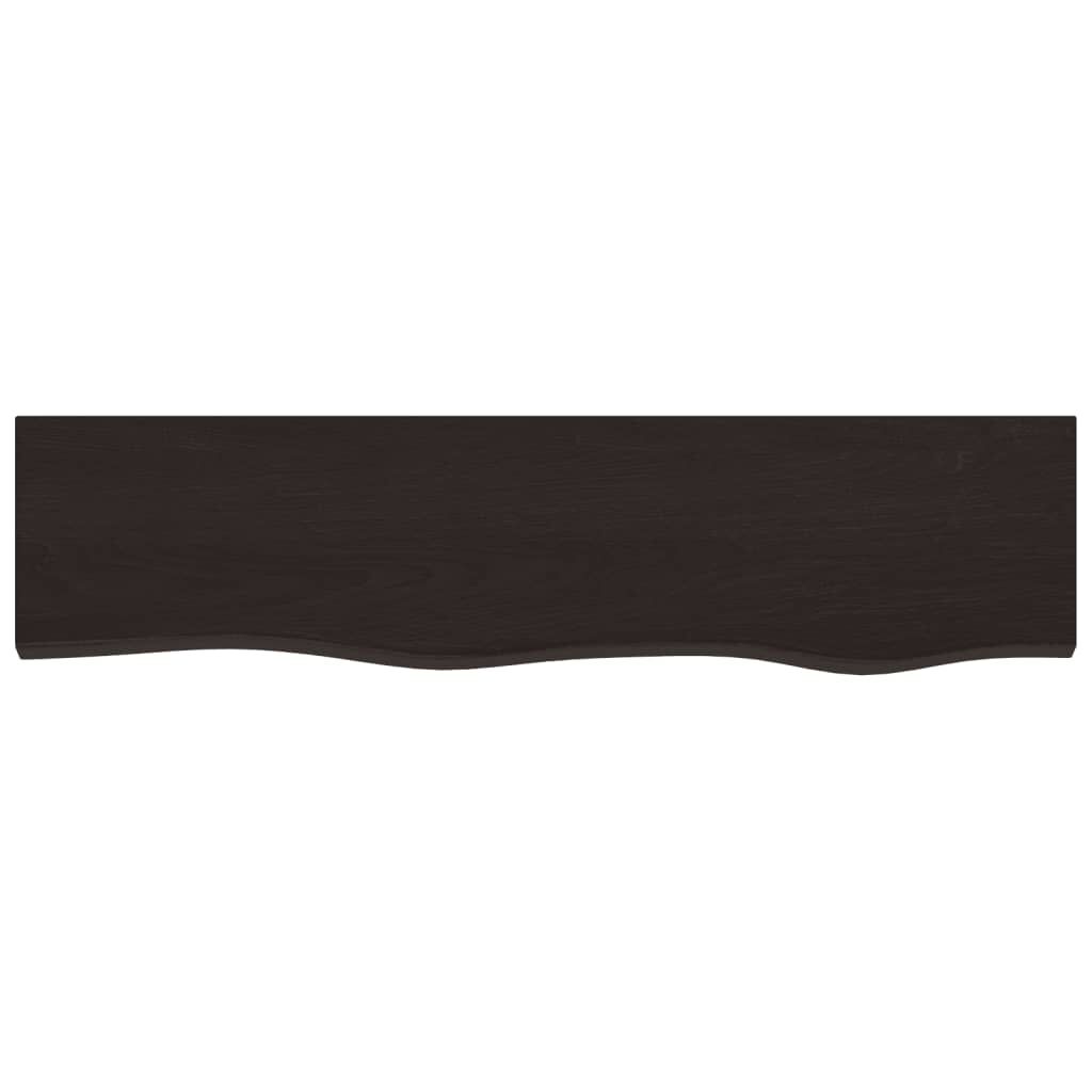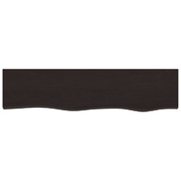 Do you need more storage options but don't have any spare space? This wall shelf in rustic style is the perfect solution. Durable construction: The wall shelf is made of solid oak wood, which is a beautiful natural material. Oak wood has a medium brown colour and a dense grain, contributing to its unique look.Versatile applications: Besides a shelf, this storage shelf can be combined with different bases according to your needs. It can be used as a bathroom top, cabinet top, desk top, table top etc.Treated surface: The wooden shelf has been treated with dark paint so it is ready for use as an additional finish is not required.Handmade with live edge: This shelf board is handmade with a live edge. Due to that the knots, cracks, slightly curved shapes, and colour tones are part of the oak wood, every piece of shelf has its own unique character to display. The delivery is random, ensuring the exclusivity and individuality of your product. Good to know:As a natural product, wood may show knots and imperfections that we fill with black fillings to ensure a smooth appearance.
