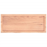 Do you need more storage options but don't have any spare space? This wall shelf in rustic style is the perfect solution. Durable construction: The wall shelf is made of solid oak wood, which is a beautiful natural material. Oak wood has a medium brown colour and a dense grain, contributing to its unique look.Versatile applications: Besides a shelf, this storage shelf can be combined with different bases according to your needs. It can be used as a bathroom top, cabinet top, desk top, table top etc.Treated surface: The wooden shelf has been varnished so it is ready for use as an additional finish is not required.Handmade with live edge: This shelf board is handmade with a live edge. Due to that the knots, cracks, slightly curved shapes, and colour tones are part of the oak wood, every piece of shelf has its own unique character to display. The delivery is random, ensuring the exclusivity and individuality of your product. Good to know:As a natural product, wood may show knots and imperfections that we fill with black fillings to ensure a smooth appearance.