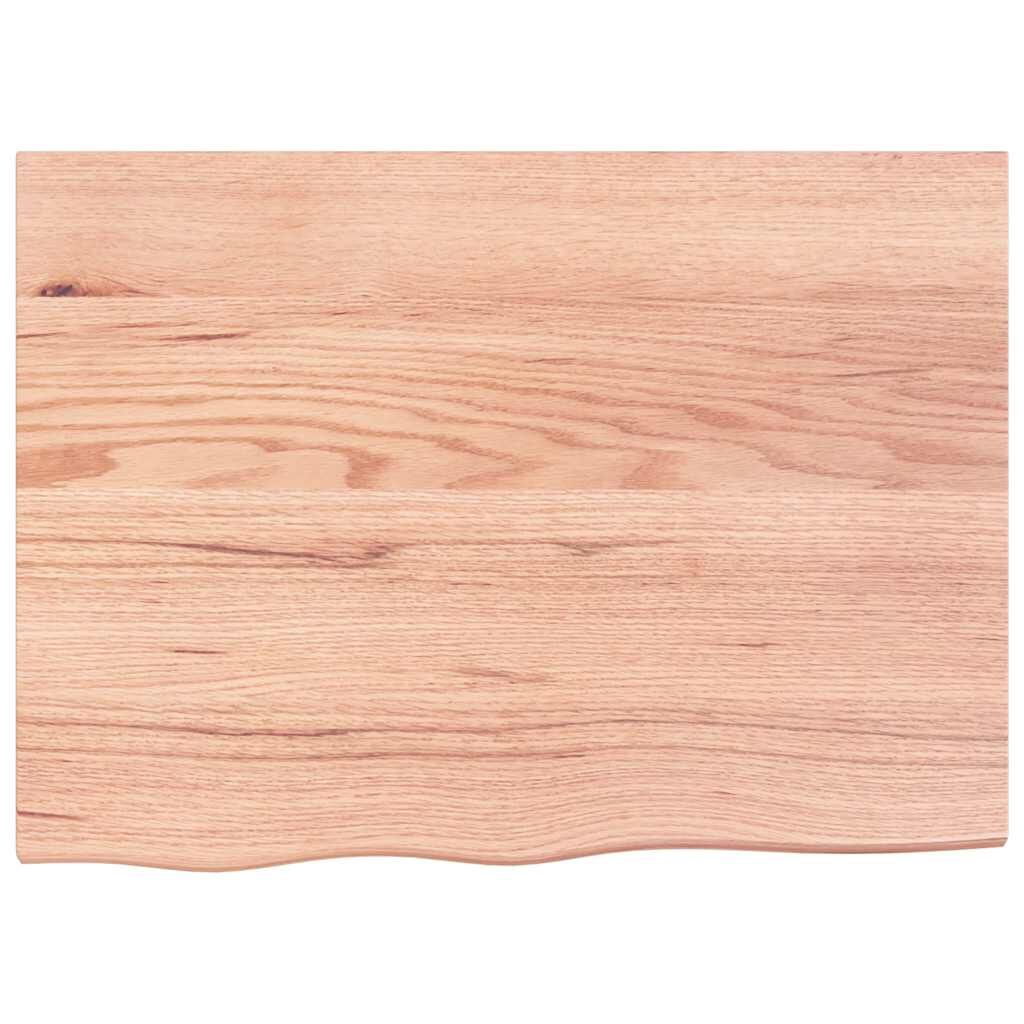 Do you need more storage options but don't have any spare space? This wall shelf in rustic style is the perfect solution. Durable construction: The wall shelf is made of solid oak wood, which is a beautiful natural material. Oak wood has a medium brown colour and a dense grain, contributing to its unique look.Versatile applications: Besides a shelf, this storage shelf can be combined with different bases according to your needs. It can be used as a bathroom top, cabinet top, desk top, table top etc.Treated surface: The wooden shelf has been varnished so it is ready for use as an additional finish is not required.Handmade with live edge: This shelf board is handmade with a live edge. Due to that the knots, cracks, slightly curved shapes, and colour tones are part of the oak wood, every piece of shelf has its own unique character to display. The delivery is random, ensuring the exclusivity and individuality of your product. Good to know:As a natural product, wood may show knots and imperfections that we fill with black fillings to ensure a smooth appearance.