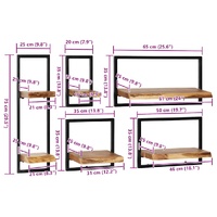 This wall shelf set consists of 5 shelf units in different sizes and will turn an empty wall into a special feature with its retro design. The solid wooden shelves are ideal for displaying various items such as books, awards, collectables, ornaments, etc. The shelf set combines solid acacia hardwood shelves with stable powder-coated steel frames. The acacia hardwood shelves are solid, stable and durable and the visible wood grains exude a rustic charm, while the steel frames add to the set's industrial look. The shelf units can be used separately or together to suit your interior decor. The wall shelf set is easy to assemble. Important note: Colours and grains may vary from piece to piece, making each of our products unique. The delivery is random, ensuring the exclusivity and individuality of your product.