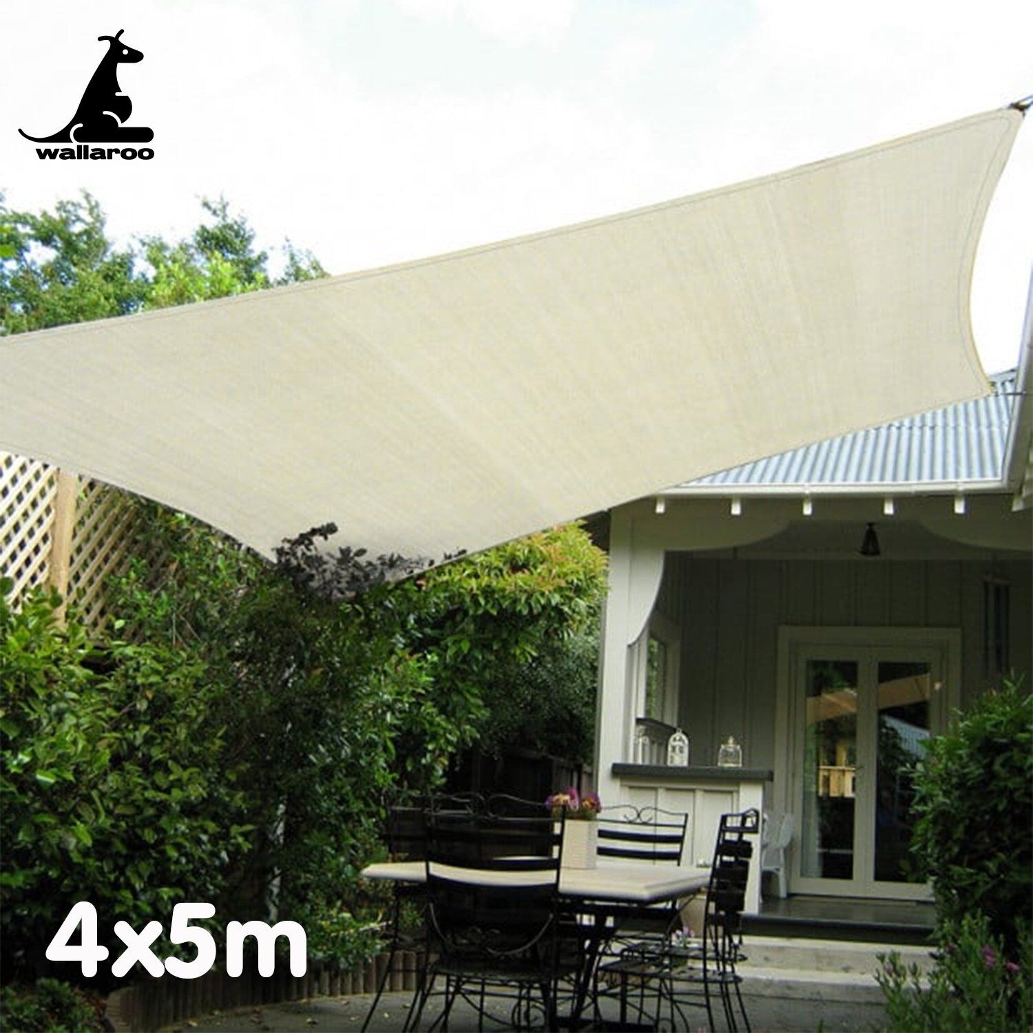 Wallaroo Waterproof 160GSM Outdoor Sun Shade Sail Canopy Cream 4 x 5m