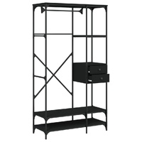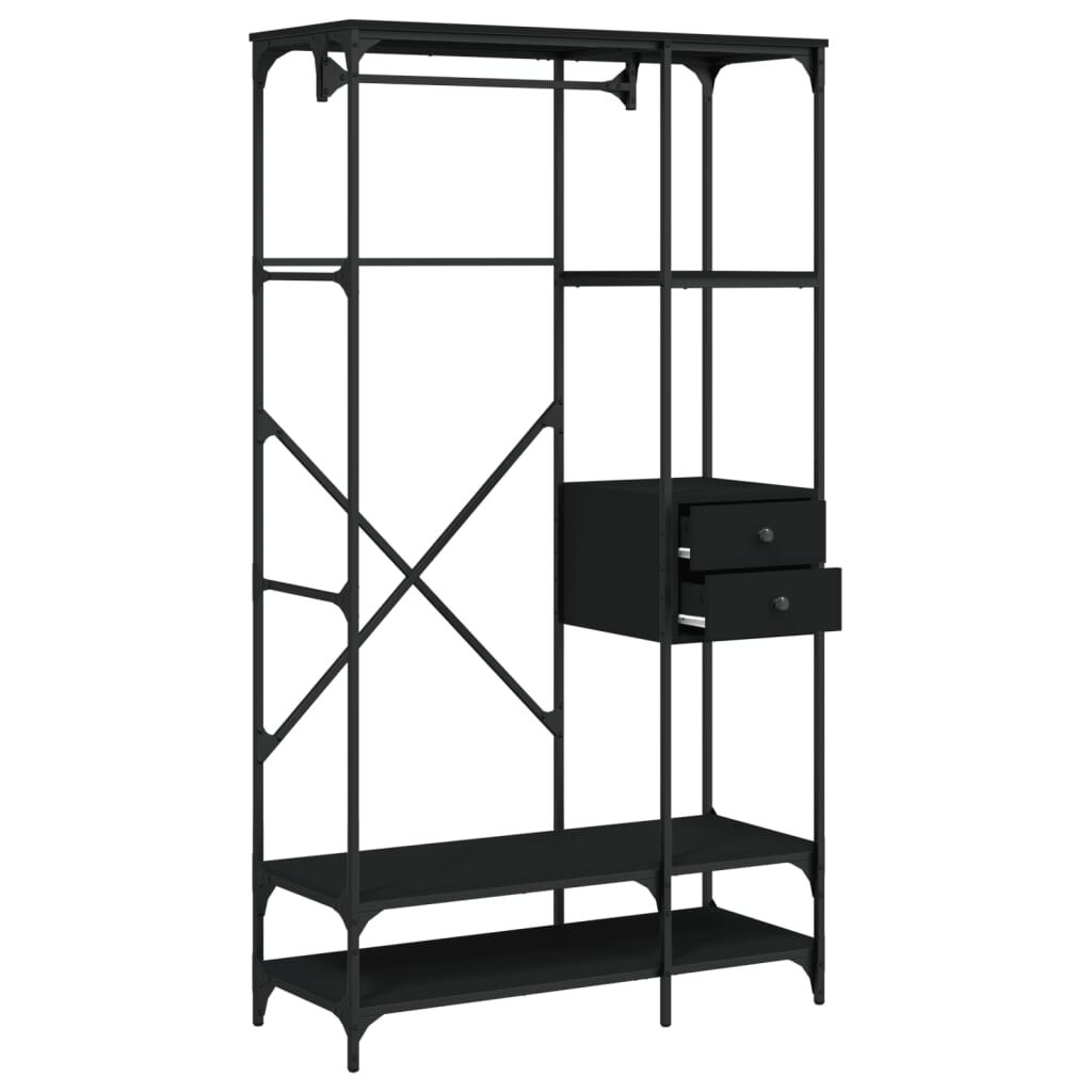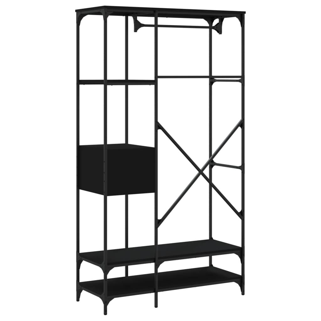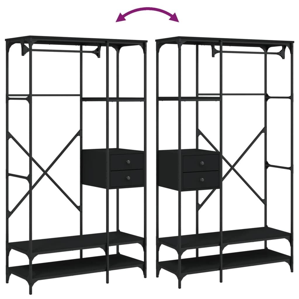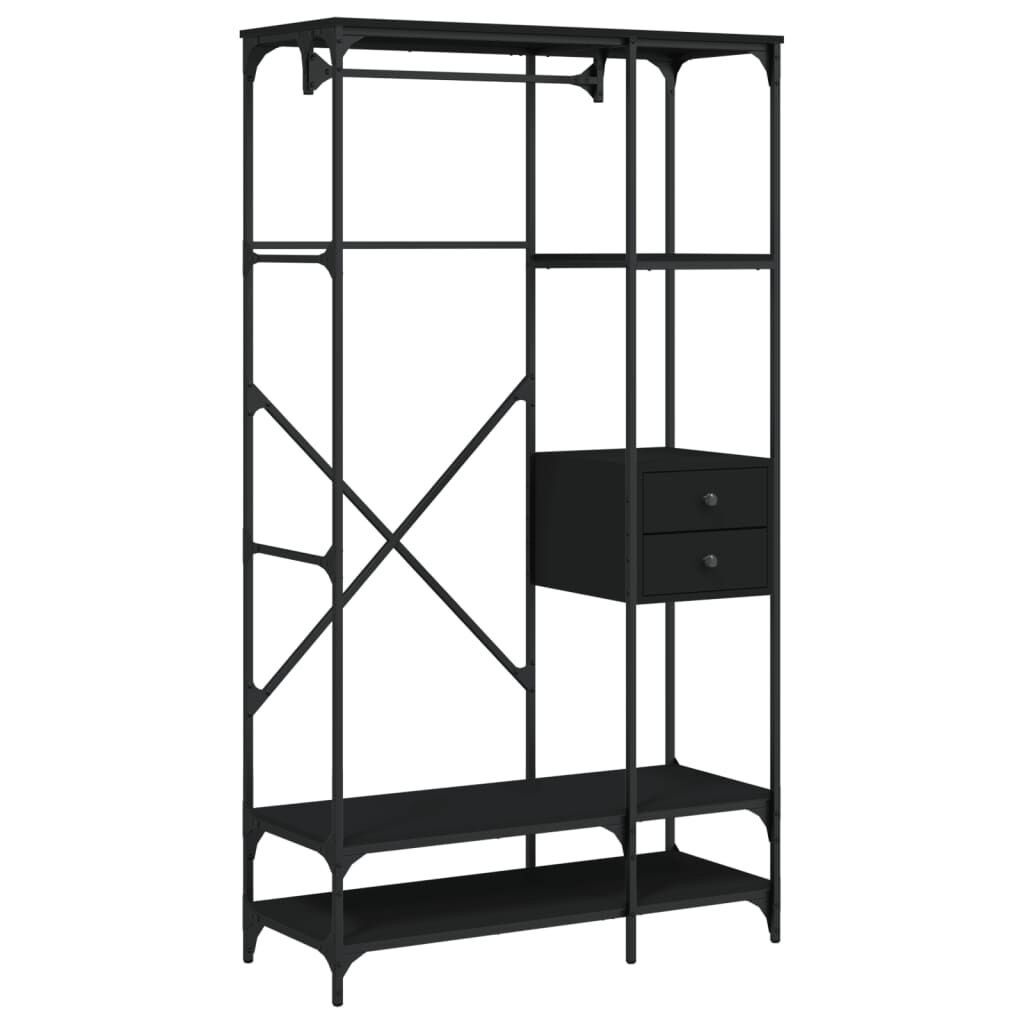 Clean up your closet and easily pick out your outfit with this wardrobe! Durable and sturdy material: The engineered wood is of exceptional quality with smooth surface and also features strength, stability and resistance to moisture. The metal frame of the storage cabinet ensures sturdiness and stability.Ample storage space: The closet organiser has plenty of room for organizing your clothes and bags. The upper shelf is great for boxes and folded clothes, while the lower shelf is perfect for shoes. You can hang your longer outfits on the rob and put your underwear in the drawers.Stylish and compact design: The clean lines and minimalist design make the armoire blend into your room perfectly and is also perfect for small space due to its compact size.Adjustable feet: The adjustable feet with plastic pads keep the bedroom cupboard balanced on uneven ground and increase stability. Warning:To prevent it being overturned, this product must be used with the provided wall attachment device. Good to know:Screws and plugs for inside the wall are not included. We advise to find and use screws and plugs suitable specifically for your walls. If you're not sure, you can consult with a professional. Please read and follow each step of the instructions.