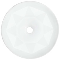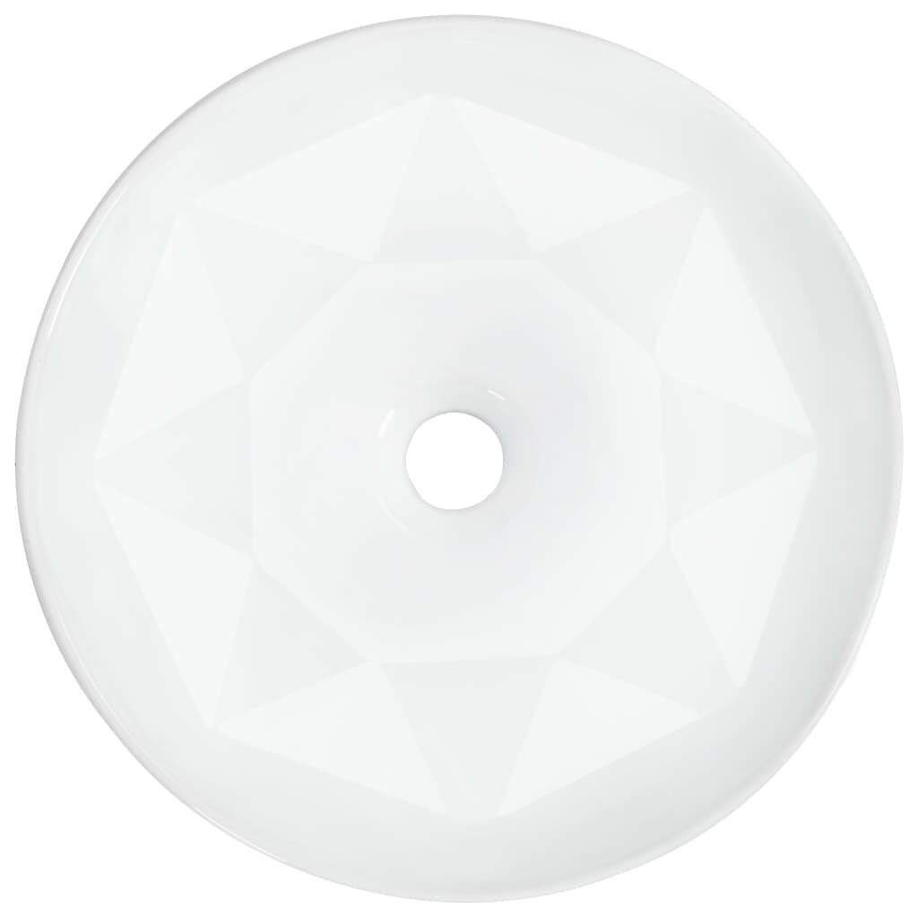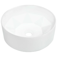 Made of ceramic, this round basin with diamond design will be a chic and timeless addition to any bathroom, washroom, cloakroom or powder room. The washroom basin can not only serve as vessel for daily use, but also an adornment in your living space. Thanks to its trendsetting and contemporary design, this wash basin will definitely suit any decor. Made of ceramic, the sink is considerably easy to clean. Additionally, its high gloss finish adds a charming touch to this bathroom basin. Please note that the tap and the drain are not included in delivery.