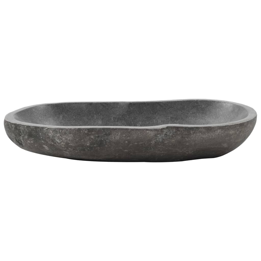 This oval wash basin, made of natural river stone, will make a stylish addition to any bathroom or washroom. This unique natural stone basin is not only a practical sink for everyday use, but also an adornment for your living space. The low height and big sink surface exude a rustic charm and will definitely suit any interior style. Additionally, the inner surface is smoothly polished, making cleaning really easy. The drain hole is 4.5 cm in diameter. Note: Riverstone is a natural product and colour differences might therefore occur. The real product might be lighter or darker than in the photos and sometimes there might be a mix of colours in the product. Also, the shape may vary and the delivery is random, ensuring the exclusivity and individuality of your product.