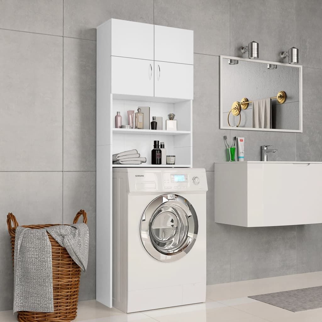 $93.99With this washing machine cabinet, you can create and optimally use additional storage space in the bathroom. The clean lines and sleek design make it blend into your bathroom perfectly. Made of chipboard, the bathroom cupboard is sturdy and durable. The 2 open compartments and 2 doors offer ample storage room for keeping your laundry utensils, cleaning supplies, toiletries and other items well organised and within reach. Additionally, this cabinet is easy to clean with damp cloth. This washing machine cupboard is easy to assemble with included mounting materials.