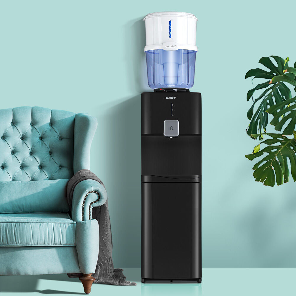 Have access to cleaner and purer water at all times with the Water Dispenser. Designed to work with most bottled water or water purifying bottles, the dispenser features a high-efficiency compressor that works quietly and reliably, and enables selective cooling and boiling for more energy savings. It comes with a detachable water guide plate that can cater to either water containers. The dispenser has LED indicators for easy operation and features the latest one-faucet design for hot and cold water options. Even better, the hot water has three water temperature options to suit your needs. A removable drip tray also allows for easy cleaning. For added safety, the dispenser has overheating protection and a child lock to prevent children from tampering with the hot water options. Not least, the water dispenser has a large storage cabinet to store any accessories or drinking essentials.