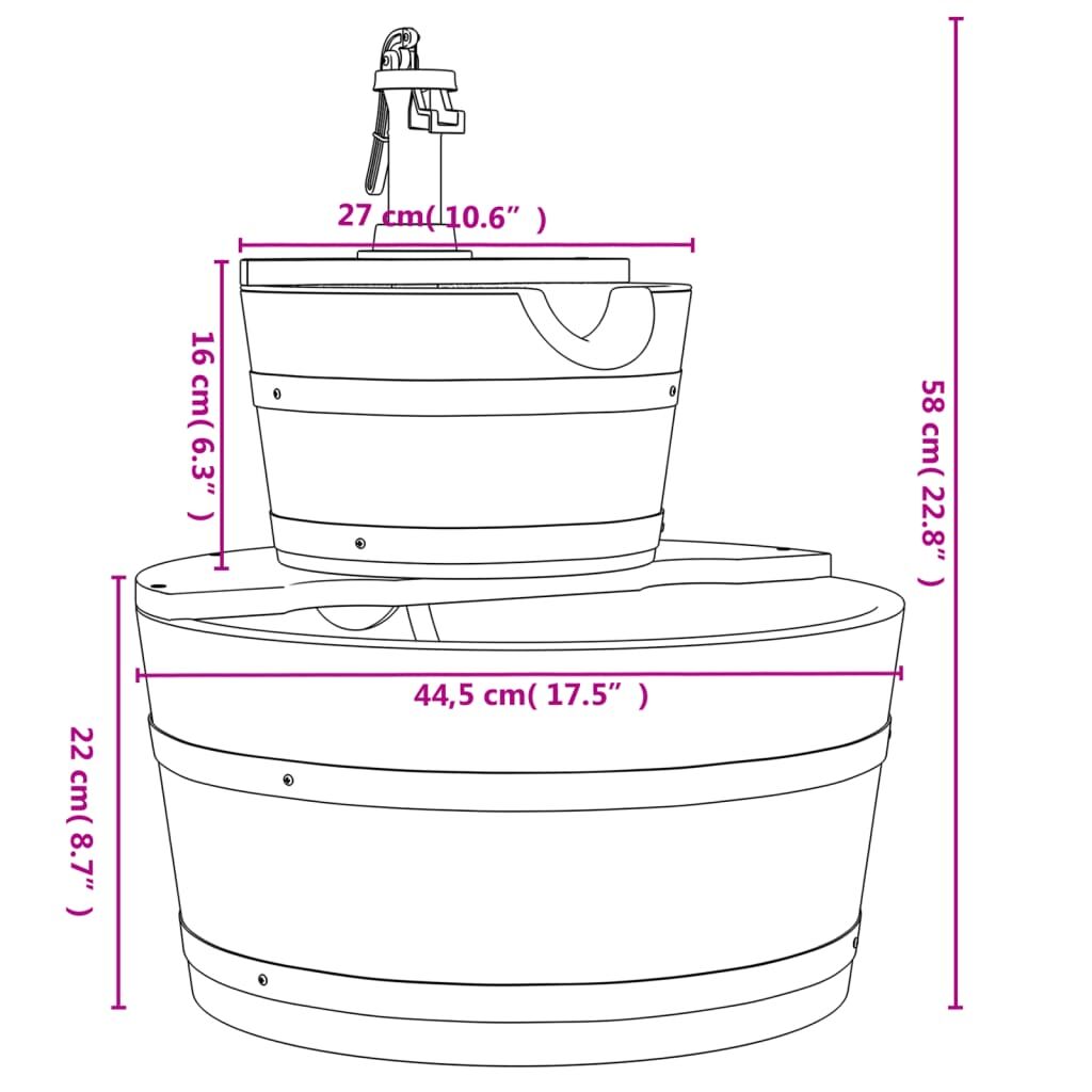 This wooden water fountain is an excellent addition to your backyard, patio and garden, making your home a unique landscape. Solid fir wood: Solid fir wood is a beautiful natural material. Fir wood doesn't dry out or warp when exposed to moisture.Convenient electric pump: The built-in water pump sends the downflow water back up to form an effective water circulation, so you don't have to refill new water manually. You can also adjust the strength of the water flow using the switch on the pump.Decorative function: The flowing water gives a joyful optical and acoustic environment, which creates a rustic and elegant atmosphere for your garden. In addition, the cascade fountain will invite smaller animals such as birds and squirrels to visit your garden.Sturdy and stable frame: The wooden frame of the garden fountain ensures sturdiness and stability.