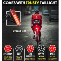Advanced Design: USB rechargeable front and backlight, built in 1800mAh rechargeable lithium battery for Headlight Waterproof rated to IPX4 - Protected against splashing water from any angle.