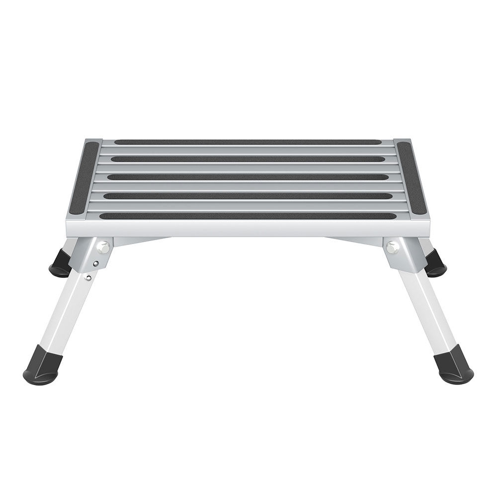 Make your travel more convenient with our Weisshorn RV Folding Step Stool. Made from lightweight aluminium construction, the step platform provides extra stability with non-slip gripper strips, non-slip rubber feet, and free-lock legs. The step folds down easily to 7cm in height, so you can easily slip it into any storage space. Our step is suitable for a wide variety of vehicles, so you can easily get into your RV, trailer, truck or SUV. For safety and convenience, our steps are highly recommended for camping or moving things outdoors. Have a Weisshorn Caravan Step at the ready on your next camping trip!