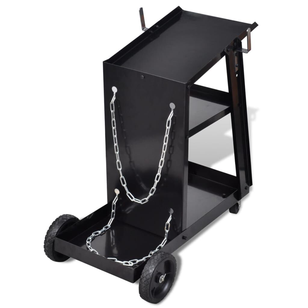 This welding cart has a robust steel construction. Featuring 3 black-painted shelves, it is an ideal choice to carry your workshop tools such as MIG welders, inverters, and welding accessories. Made of quality steel, our welding trolley boasts a maximum load of 40 kg. The tilted top shelf gives you better control, and the other 2 spacious shelves offer you ample storage room. Two rear fixed wheels and two front swivel casters provide smooth maneuverability. Thanks to its strong frame with lacquered finish, our welding cart has ultra durability for years of use.