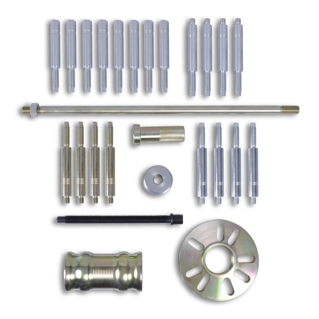 This wheel hub puller set is a must have for professionals in garage or workshop. It is perfect for professional use because of its superior quality, comprehensive fittings and easy storage. It is a heavy duty wheel hub puller set consisting of 30 pieces for the removal of stubborn stud hubs and brake drums on cars and light commercial vehicles. With all pieces supplied in a blow molded case, you can find the fittings you need at a glance and display them easily in order for both storage and transportation.