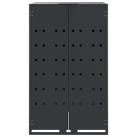 This wheelie bin storage discreetly hides your garbage bins in the garden, transforming your outdoor space into a beautiful and tidy environment. Strong and durable material: The powder-coated steel provides strength, stability, durability, and resistance to corrosion and harsh weather conditions, ensuring long-lasting performance.Practical lid mechanism: The gas-spring lid comes with a bungee cord that connects your bin's lid to it, so the bin lid opens automatically when you lift the lid of the bin store.Easy access: The front doors with magnetic closures make it a breeze to remove and replace the bins, ensuring waste disposal is effortless.Good ventilation: These vents on the panels promote air circulation, preventing odour buildup and keeping your bins fresh.Flexible design: You can enlarge your bin shed to accommodate more bins by adding extra extensions. These extensions are available for individual purchase at the store.