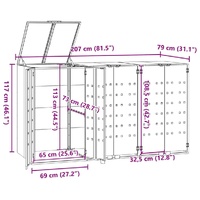 Wheelie Bin Storage for 3 Bins Grey 207x79x117 cm Steel