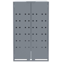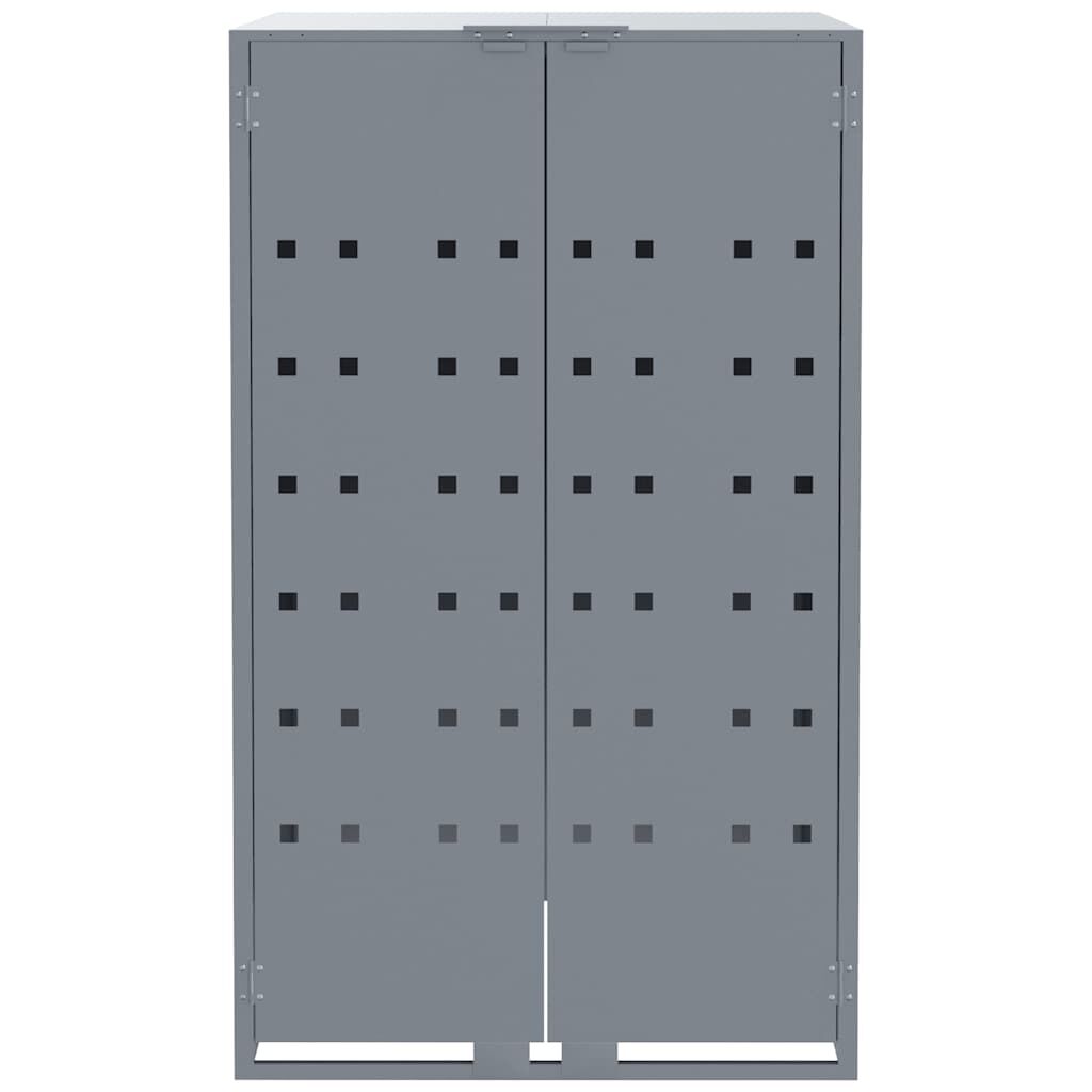 This wheelie bin storage discreetly hides your garbage bins in the garden, transforming your outdoor space into a beautiful and tidy environment. Strong and durable material: The powder-coated steel provides strength, stability, durability, and resistance to corrosion and harsh weather conditions, ensuring long-lasting performance.Practical lid mechanism: The gas-spring lid comes with a bungee cord that connects your bin's lid to it, so the bin lid opens automatically when you lift the lid of the bin store.Easy access: The front doors with magnetic closures make it a breeze to remove and replace the bins, ensuring waste disposal is effortless.Good ventilation: These vents on the panels promote air circulation, preventing odour buildup and keeping your bins fresh.Flexible design: You can enlarge your bin shed to accommodate more bins by adding extra extensions. These extensions are available for individual purchase at the store.