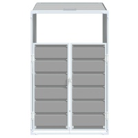 This wheelie bin storage discreetly hides your garbage bins in the garden, transforming your outdoor space into a beautiful and tidy environment. Strong and durable material: The powder-coated steel provides strength, stability, durability, and resistance to corrosion and harsh weather conditions, ensuring long-lasting performance.Practical lid mechanism: The lid comes with chains that connect your bin's lid to it, so the bin lid opens automatically when you lift the lid of the bin store.Easy access: The front doors with a latch system make it a breeze to remove and replace the bins, ensuring waste disposal is effortless.Good ventilation: These vents on the panels promote air circulation, preventing odour buildup and keeping your bins fresh.Flexible design: You can expand this wheelie bin storage to hold more bins by adding extra extensions. These extensions are available for individual purchase at the store.