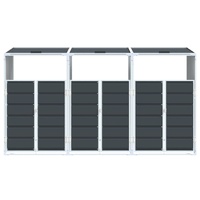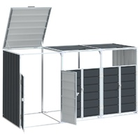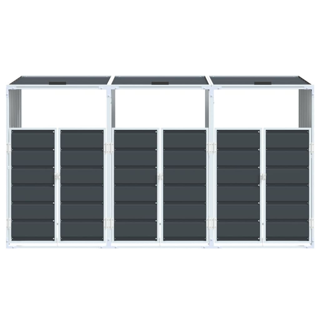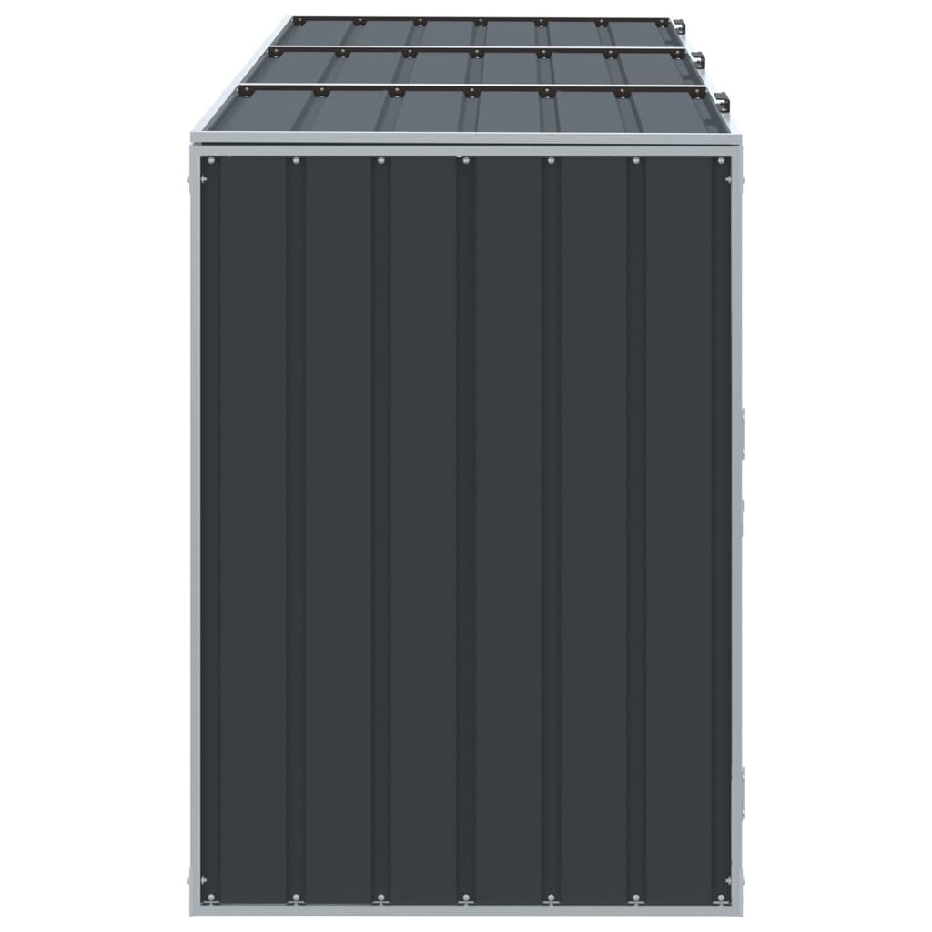 This wheelie bin storage discreetly hides your garbage bins in the garden, transforming your outdoor space into a beautiful and tidy environment. Strong and durable material: The powder-coated steel provides strength, stability, durability, and resistance to corrosion and harsh weather conditions, ensuring long-lasting performance.Practical lid mechanism: The lid comes with chains that connect your bin's lid to it, so the bin lid opens automatically when you lift the lid of the bin store.Easy access: The front doors with a latch system make it a breeze to remove and replace the bins, ensuring waste disposal is effortless.Good ventilation: These vents on the panels promote air circulation, preventing odour buildup and keeping your bins fresh.Flexible design: You can expand this wheelie bin storage to hold more bins by adding extra extensions. These extensions are available for individual purchase at the store.